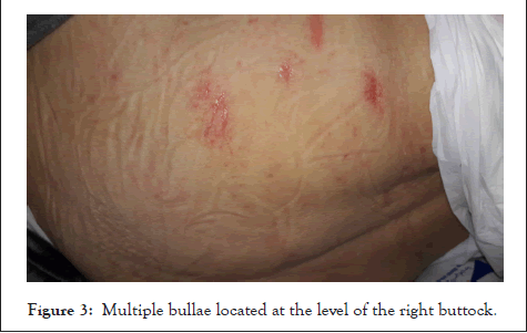 Figure 3: Multiple bullae located at the level of the right buttock.
