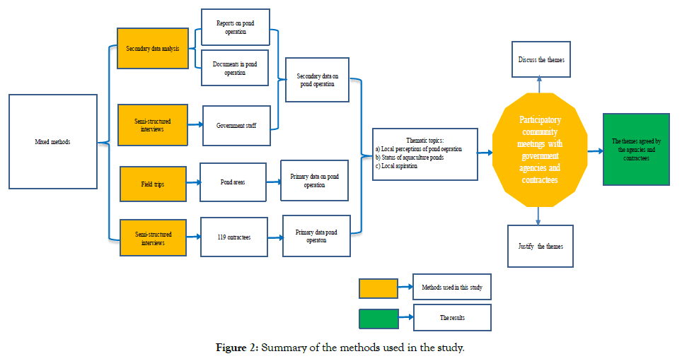 The secondary data and primary data were systematically categorized into themes that were used for discussion in meetings with local fishers and farmers and two Management Boards at a later stage. The themes included (a) Local perceptions of factors influencing the sustainability of aquaculture ponds, (b) The status of aquaculture ponds along the Kien Giang coastline; and (c) Aspirations of improving the efficacy of aquaculture ponds operation.