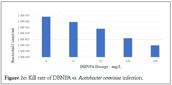 Figure 2c: Kill rate of DBNPA vs. Acetobacter cerevisiae infection.