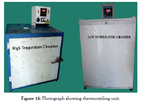 All metal copings, on each of the respective prepared tooth were cemented sequentially and were tested for retention after they were thermocycled by dwelling in 5°C and 55°C bath for 700 alternating 1/min immersion (Figure 14).