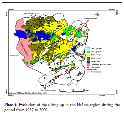 Plate 1: Evolution of the silting up in the Naâma region during the period from 1957 to 2002.
