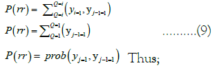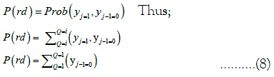 In contrast, Markov chain is a mathematical model that describes a sequence of events where the probability of the current rainfall event depends only on the state of the previous rain event and is best relate if in sequential order [65]. In order to estimate probability events occurrence of rainfall and dry spells as usually used in the analysis of daily rainfall, the first order Markov chain modeling approach was utilized in different studies, for example; extensively used in daily rainfall occurrence detection by Kottegoda et al. and Schoof et al. [66,67]. A rain condition is well-defined as a 24-hour period with the total quantity of rain. Otherwise, the state considered sunny. Rainfall occurrence is well described by the first-order Markov process as it is stochastic [68]. The assumptions based on main stochastic events is that, rainfall received for any given day follows a random distribution, only dependent on two scenarios that, the day is either dry (P(rd)) or rain (P(rr) ) as described by [65]. In the context of modelling, a first- order Markov chain can be used to describe a process where the distribution of the forthcoming state yn+1 depends only on the current state yn and doesn’t depend on the previous ones yn−1, yn−2…, y1. The characteristics of rainfall are well described by a sequence of dry (yi=0) or wet (yj=1) days in a given year (Q1) as defined by [8].