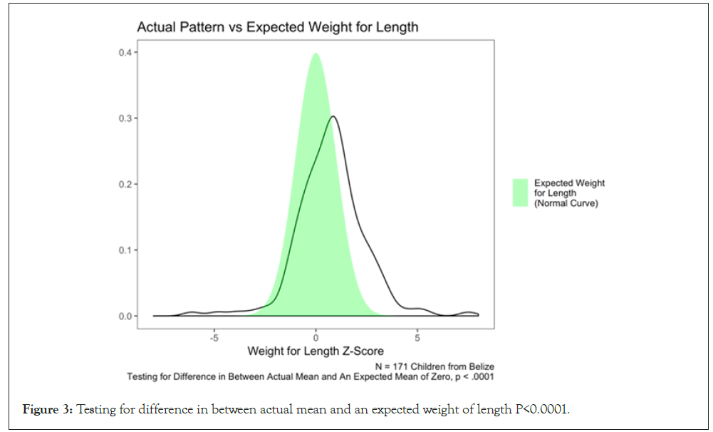 Figure 3: Testing for difference in between actual mean and an expected weight of length P<0.0001.