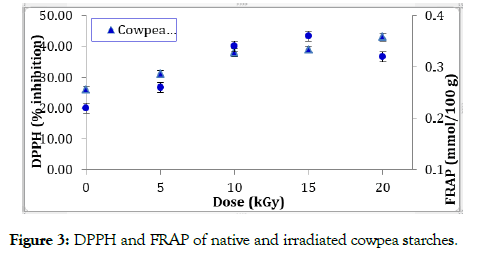 Figure 3. DPPH and FRAP of native and irradiated cowpea starches.