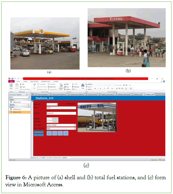 Figure 6: A picture of (a) shell and (b) total fuel stations, and (c) form view in Microsoft Access.