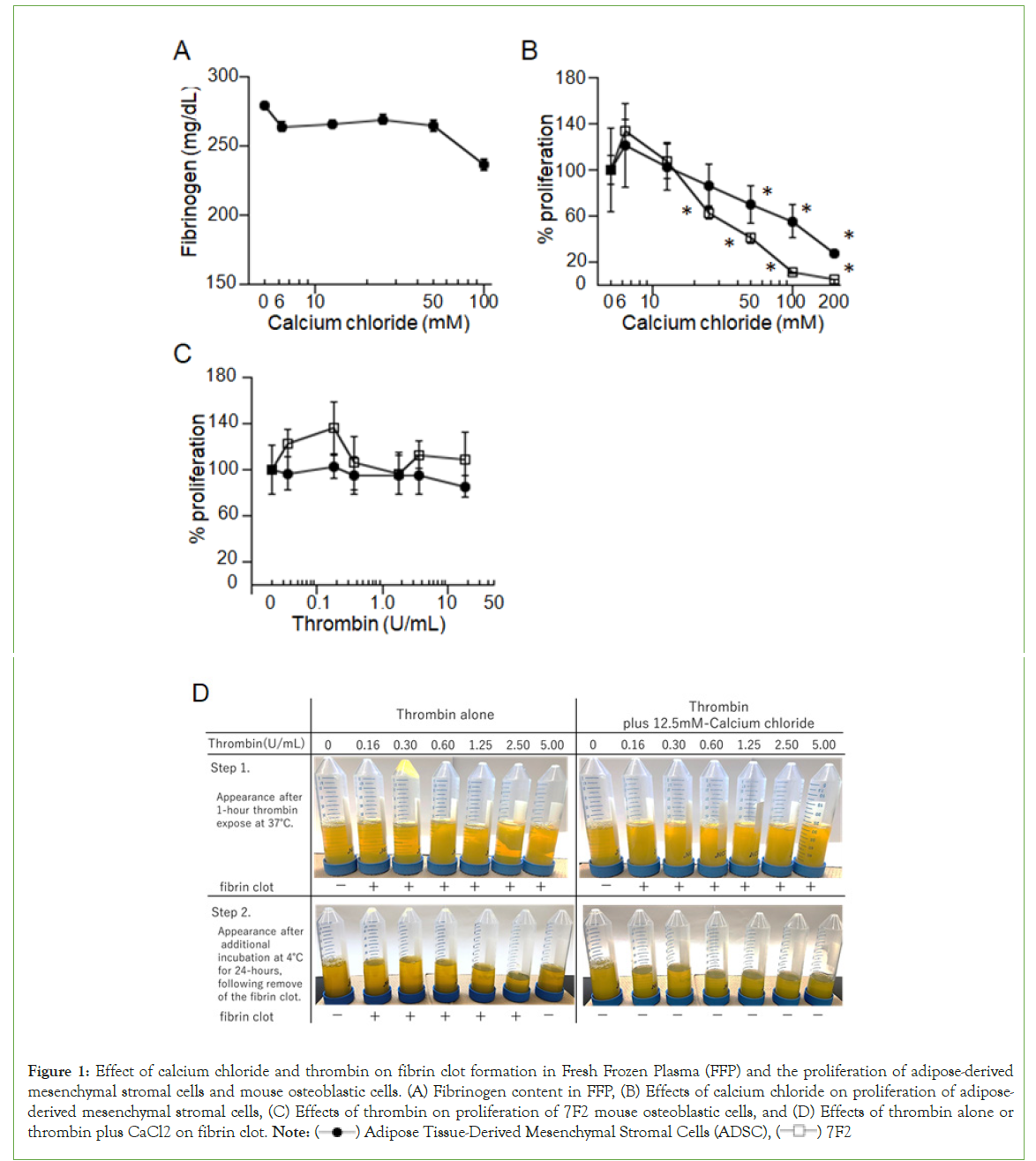 mesenchymal stromal cells and mouse osteoblastic cells. (A) Fibrinogen content in FFP, (B) Effects of calcium chloride on proliferation of adiposederived
