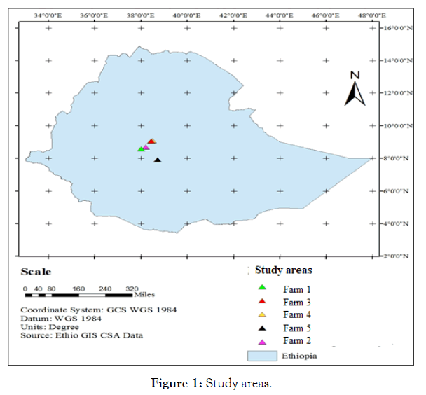 This study assessed the environmental and social consequences inhabitants living around five flower farms (Farm 1, Farm 2, Farm 3, Farm 4, and Farm 5) in Central Ethiopia. The flower farms’ location was depicted in Figure 1. Farm 1 and Farm 2 are found in the Southwest Shewa zone (Woliso Woreda and Bacho Woreda, respectively). Farm 3 and Farm 4 are found in the West Shewa zone (Walmera Woreda). And, Farm 5 is located in the East Shewa zone, Adami Tulu Jido Kombolcha Woreda. These flower farms were purposely selected for this study based on the intensity of the social complain as per the local Environment, Forest, and climate change authority recommendation (Figure 1).