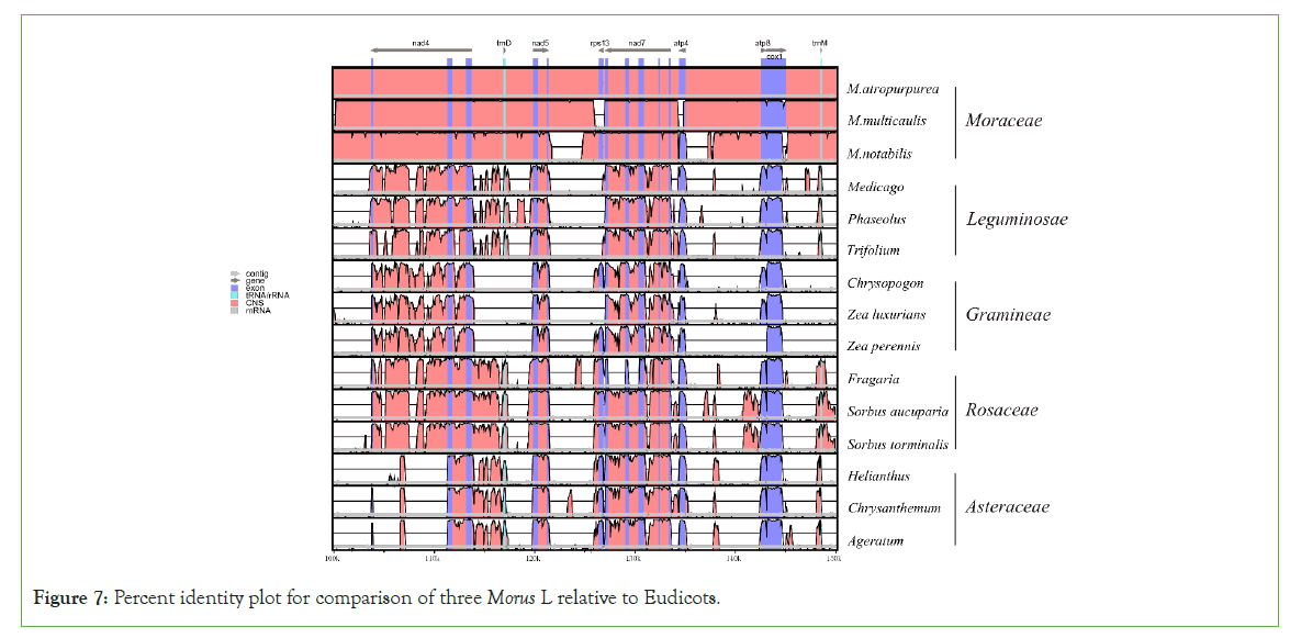 Figure 7: Percent identity plot for comparison of three Morus L relative to Eudicots.