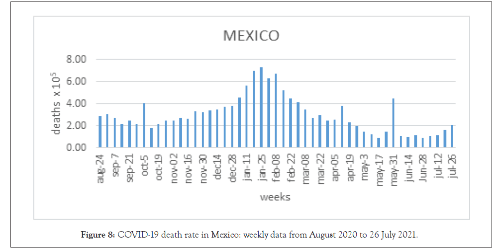 Figure 8: COVID-19 death rate in Mexico: weekly data from August 2020 to 26 July 2021.