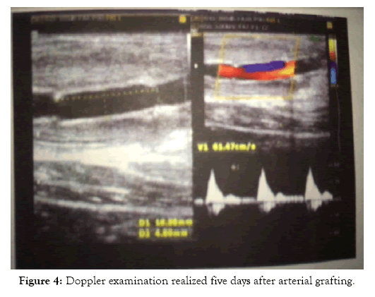Figure 4: Doppler examination realized five days after arterial grafting.